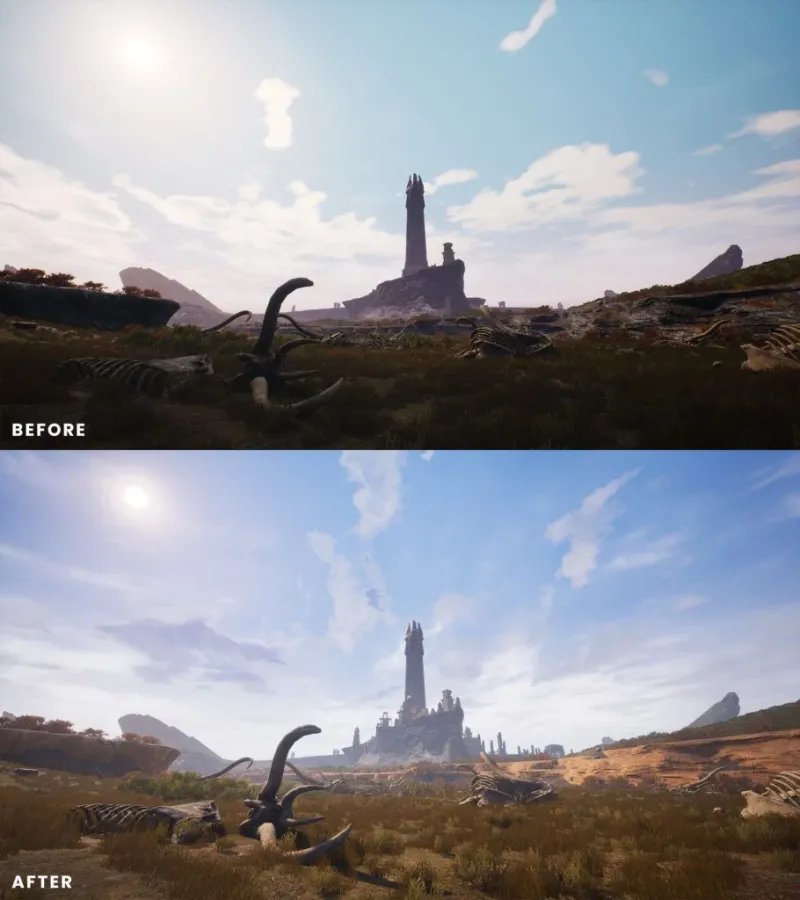 Благодаря этому остров стал намного ярче и красочнее. Улучшения неба и освещения особенно заметны у Башни Сиптаха в центре острова. Раньше эта местность была довольно темной и мрачной.