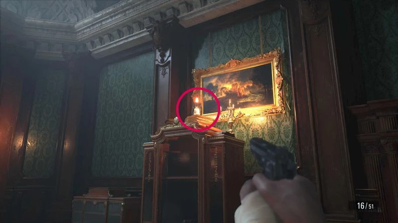 2. Кабинет. Наверху шкафа напротив Портрета Димитреску есть крошечный колокольчик.