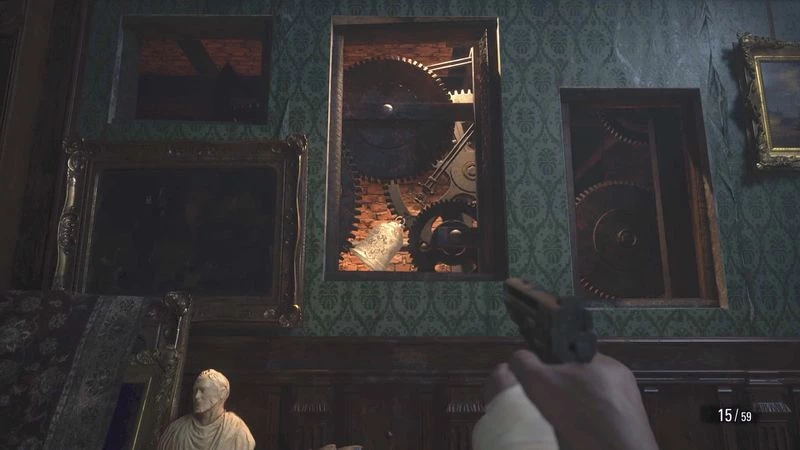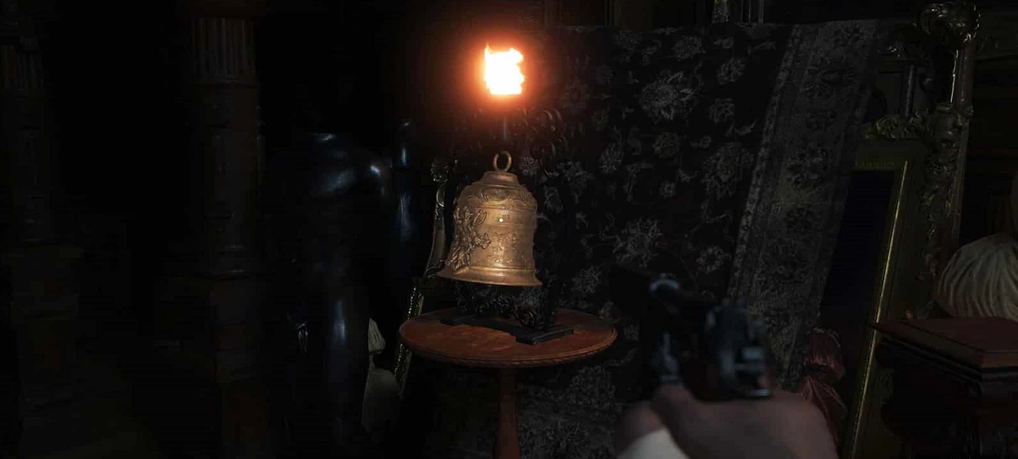 - Слева от портрета Димитреску расположен самый простой колокол. Он стоит на столе. Между статуей и бюстом.