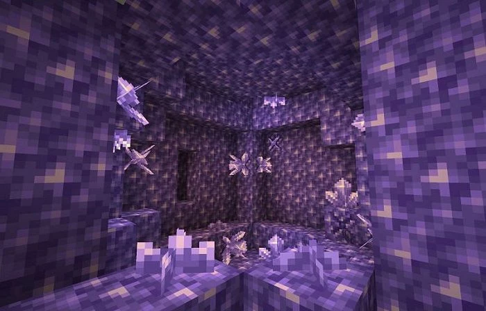 Кластеры аметиста Minecraft и бутоны аметиста растут на блоках бутонизированного аметиста. Их можно узнать по крестику на боках. Обратите внимание, что вы не можете добывать Budding Amethyst, но вы можете вернуться, чтобы найти недавно появившиеся бутоны аметиста.