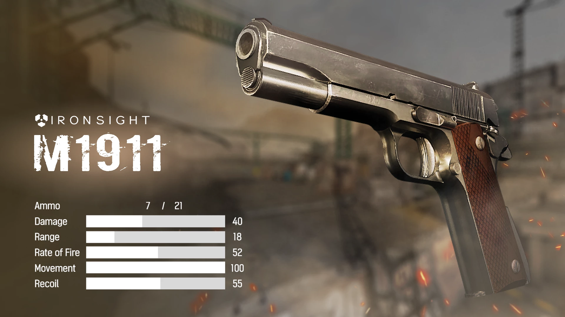 M1911 с его глубокой историей и традициями был добавлен в качестве нового пистолета в Ironsight.Достижения