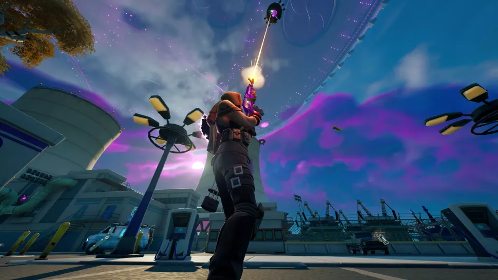 Как только вы обнаружите корабль, пилотируемый одним из нарушителей Fortnite, вам нужно сбить его, чтобы вы могли позаботиться о пассажирах. Рельсовая пушка - лучшее оружие для этой задачи, но любая пушка с дальностью действия справится с этой задачей, если вы сосредоточите свой огонь. Будьте осторожны, как только вы начнете стрелять по нему, блюдце ответит огнем из своей энергетической пушки, поэтому, как только вы увидите, что выстрел заряжается, вы должны изменить положение, чтобы не попасться под удар.