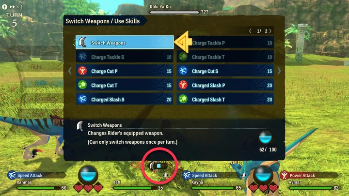 Вы можете носить с собой три оружия одновременно, поэтому вы всегда должны носить по одному оружию из каждой категории. Игроки могут переключаться между переносимым оружием, войдя в меню навыков во время боя. Использование этой гибкости - ключ к успеху в бою. Чтобы наилучшим образом использовать оружие, узнайте, против какого из трех типов оружия монстры слабы.