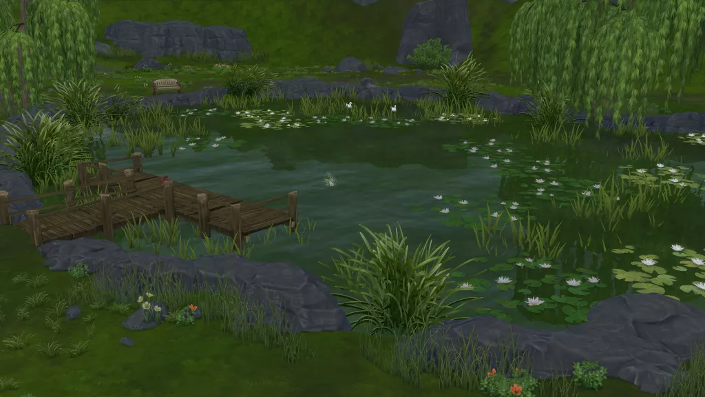 Теперь, когда у вас есть основной пруд, вы можете добавить некоторые аксессуары, включая флору и фауну. Рядом с инструментами ландшафта в режиме строительства / покупки есть новый раздел под названием «Открытый водный декор». Здесь вы можете изменить тип воды (есть и новые параметры для пруда), добавить растения, камни и бревна, а также то, что известно как «Эффекты пруда». Это маленькие плитки, которые вы можете разместить на своем пруду, чтобы порождать таких животных, как утки, лебеди или различных жуков. Они, безусловно, добавят вашему пруду особого характера.