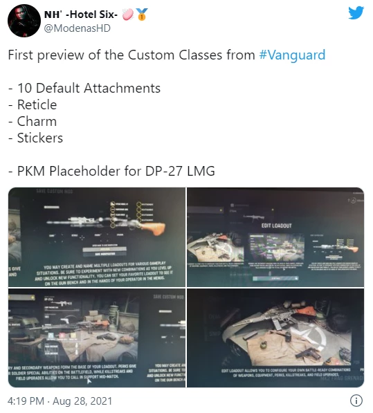 Недавняя утечка информации о многопользовательской игре Call of Duty: Vanguard раскрыла варианты создания классического оружия. Благодаря альфа-версии, которая прошла в выходные 28 августа, некоторые игроки смогли получить представление о том, как функция создания класса будет работать в Vanguard. Похоже, у нас будет 10 слотов для насадок, с которыми мы будем работать, а также стандартные амулеты и наклейки, чтобы чинить ваше оружие.