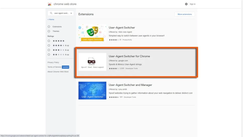 1. Установите User-Agent Switcher для расширения Chrome.