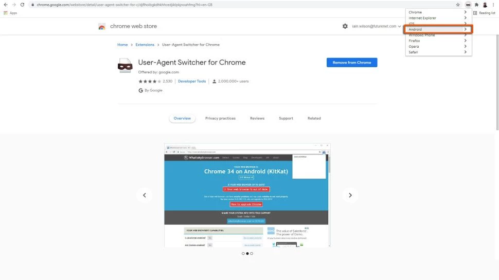 2. Используйте расширение, чтобы переключить Chrome на Android KitKat.