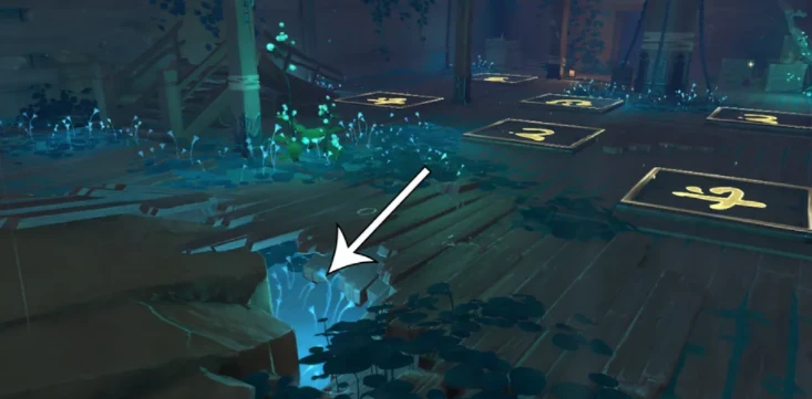 Опять же, будет загадка, похожая на ту, что находится снаружи корабля. Направьте все четыре колеса внутрь, чтобы снова образовать прямоугольник, чтобы образовалась дыра в полу.