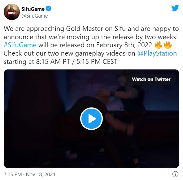 Объявлено через официальный Sifu Twitter: «Sifu выйдет 8 февраля 2022 года"