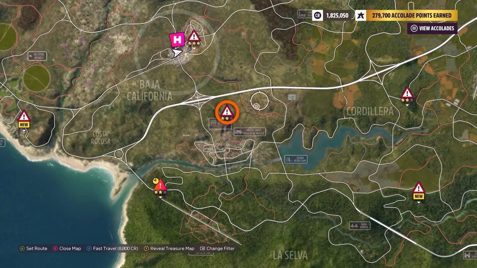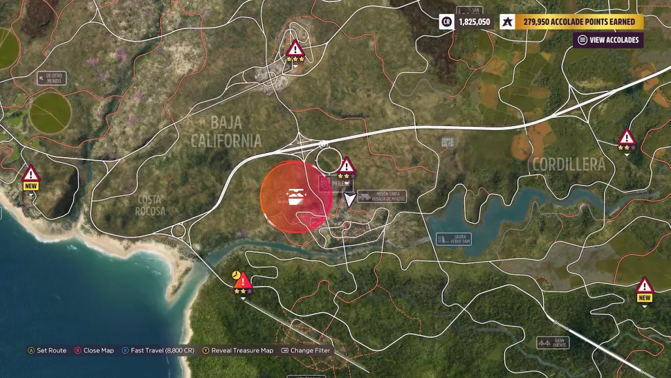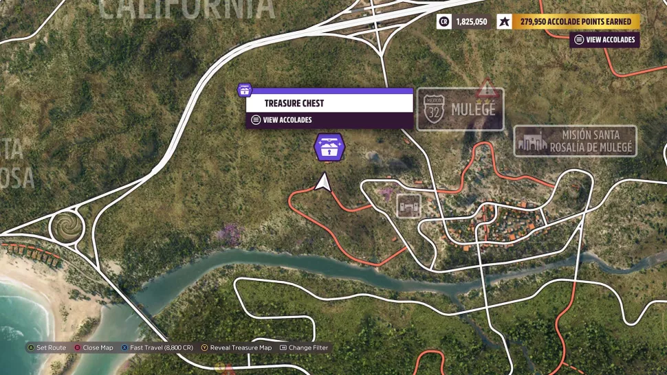 Чтобы найти сундук с сокровищами New Heights Treasure Hunt в Forza Horizon 5, вам сначала нужно получить как минимум две звезды за трюк со знаком опасности Heights of Mulege, управляя Chevrolet C8 Corvette Stingray 2020 года. Вы можете найти этот Знак опасности и его пандус на холме к северу от города Муледж. Сам Mulege находится на юге карты под основным местом фестиваля Horizon Festival Mexico в Бахе, Калифорния.Чтобы получить две звезды на знаке опасности Heights of Mulege, вам необходимо пролететь не менее 400 футов (121,9 метра) в воздухе после полета с трамплина. Поскольку Corvette Stingray 2020 года - довольно быстрая машина, вам не нужно сильно разбегаться до рампы, чтобы пролететь достаточно далеко. Нам почти удалось получить две звезды на этом Знаке опасности, путешествующем со скоростью около 70 миль в час на Stingray.После того, как вы завершите эту часть охоты за сокровищами, у вас будет область сундука с сокровищами, обведенная кружком на вашей карте, которая будет к западу от Муледжа. Сундук с сокровищами можно найти на северной стороне укрытий для белых культур к западу от Муледжа.