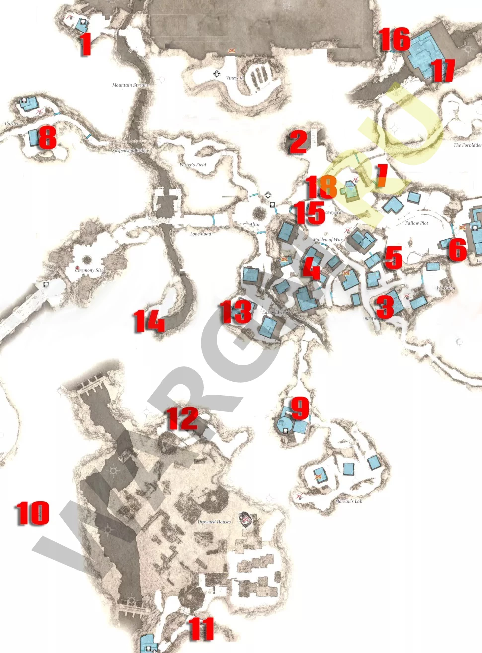 Когда вы сможете опустить подъемный мост возле места проведения церемонии, вы сможете добраться до этой области на лодке, которая станет доступной. Здесь вы найдете одну из лучших рыб Resident Evil Village, которая является одним из уникальных ингредиентов, необходимых для рецепта Sarmale de Peste, который увеличивает вашу скорость передвижения.