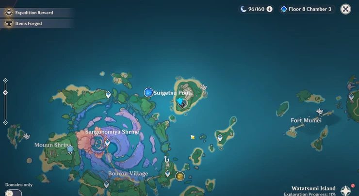 Дворец в бассейне был недавно добавлен на острове Ватацуми в регионе Инадзума. На острове вам нужно добраться до пруда Суйгецу в нижней левой части острова. Однако имейте в виду, что вам нужно быть во второй главе сюжетной линии Archon Quest, чтобы получить доступ к Инадзуме и отправиться на Остров.