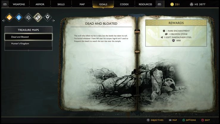 Как и во многих других играх, в God of War есть свои предметы коллекционирования. Эти предметы спрятаны в разных частях игры. Помимо святилищ Йотнара и Воронов Одина, вы также можете найти карты сокровищ, которые ведут к особой добыче. Эти сокровища закопаны и должны быть найдены, но это стоит усилий, чтобы получить отличные вещи для вашего персонажа, такие как чары или материалы, необходимые для изготовления нового снаряжения для Кратоса.