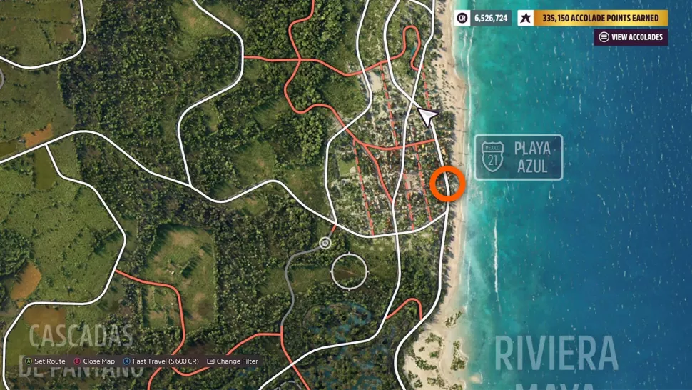 Граффити находится в пляжном городке Плайя-Асуль на восточном побережье карты Мексики. Прежде всего, чтобы выполнить задание «Пастучие кошки», убедитесь, что вы находитесь в автомобиле Jaguar — мы использовали Jaguar Sport XJR-15. Затем езжайте и быстро доберитесь до Плайя-Асуль.