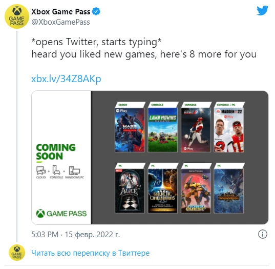 По словам известного лидера в Твиттере, во второй половине февраля мы получим пять новых игр Xbox Game Pass, которые пополнят и без того чрезвычайно обширную доступную библиотеку игр.