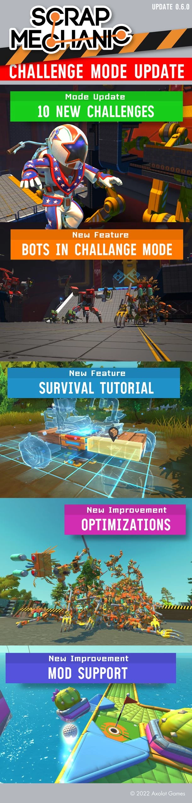 Добавлено 10 новых испытаний, всего их 50. Выполните их все и получите особенный костюм каскадера, который докажет, что у вас есть способности, чтобы стать настоящим механиком металлолома.