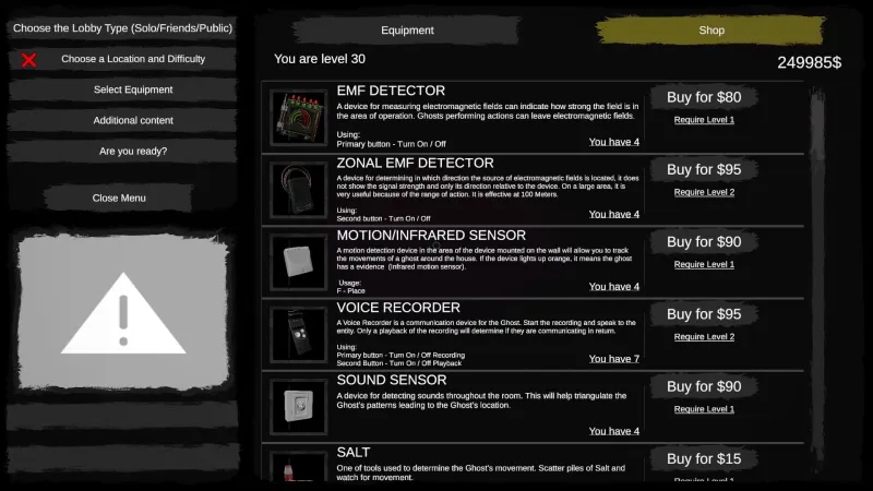 - Обучающий заказ - практическая часть обучения которая затрагивает такие темы, как работа с инструментами, взаимодействие с дверьми, основы охоты, определение призрака и его изгнание. Дабы у вас был стимул учиться после завершения обучающего заказа вы получите поощрительный бонус, в виде книги с ритуалами изгнаний, баллончика с краской и $300!