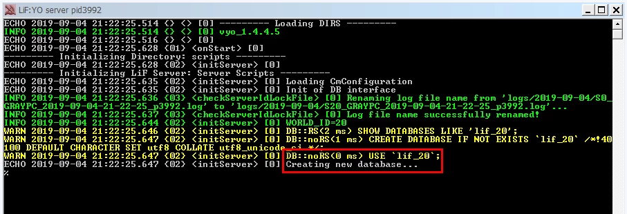 Как видим - создается база данных lif_20, как раз тот самый идентификатор в world_1.xml