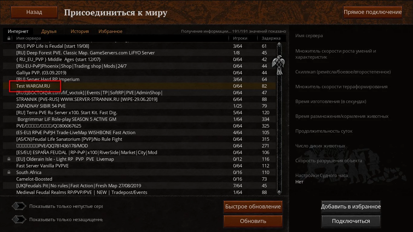 Название мира - это будет названием вашего сервера. (здесь будет "Test WARGM.RU", что бы вы смогли видеть результат).