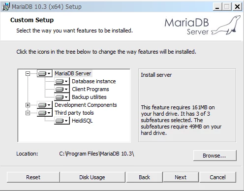 Скачиваем MariaDB (используйте стабильные версии). Устанавливаем: