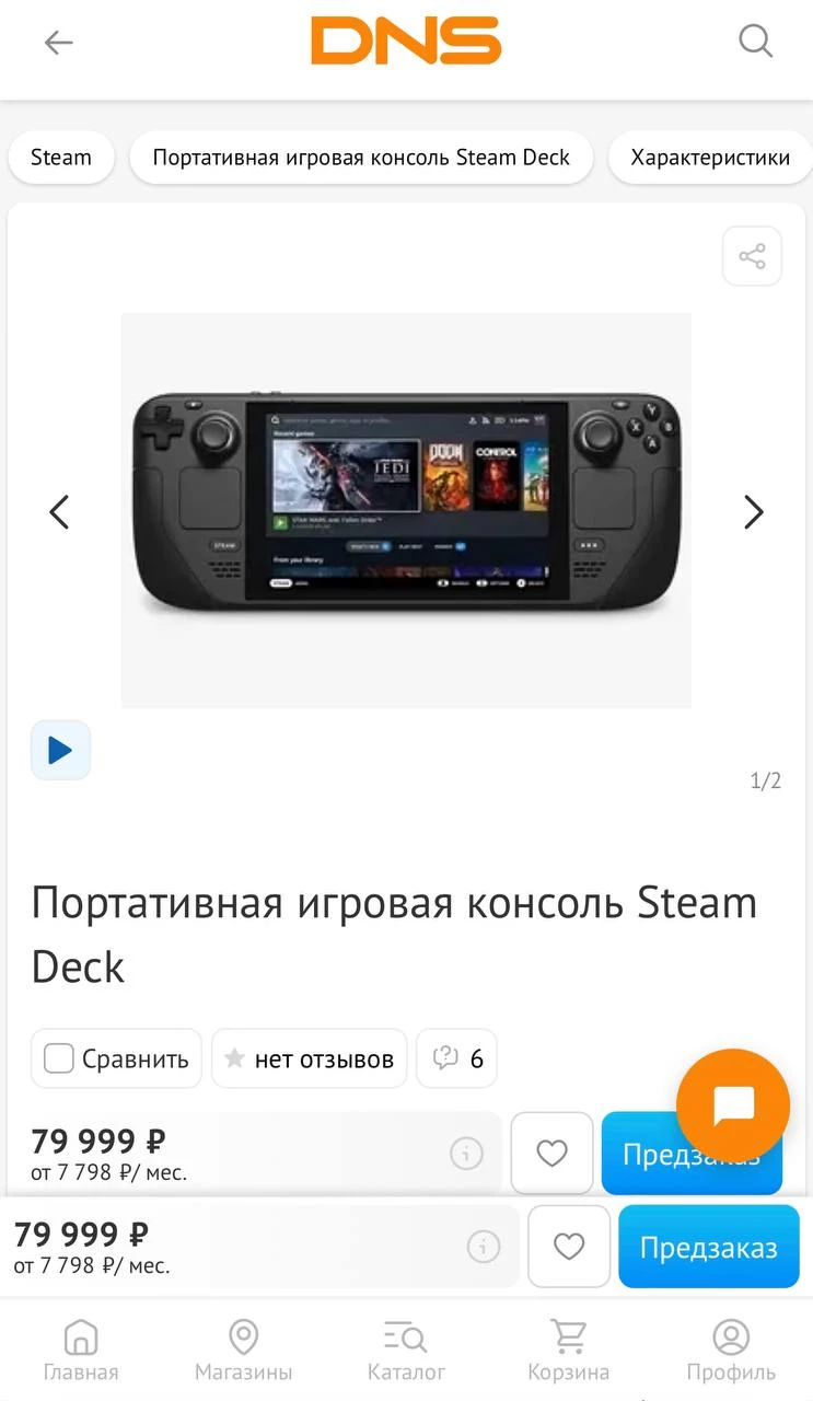 Сеть магазинов DNS открыла предзаказы на Steam Deck с 64 гб памяти. Ценник удовольствия составляет 79.999 руб.