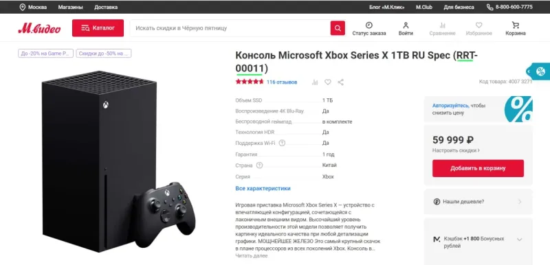 «Консоли Xbox Series X из нашего ассортимента оригинальные, произведены официально брендом и имеют все необходимые документы, а также нашу гарантийную поддержку, включая обмен и возврат. Все консоли работают на территории России, есть русский язык, работают с теми дисками, которые продаются в наших магазинах. Series S из прежних запасов, в карточке товара есть пометка RU Spec».