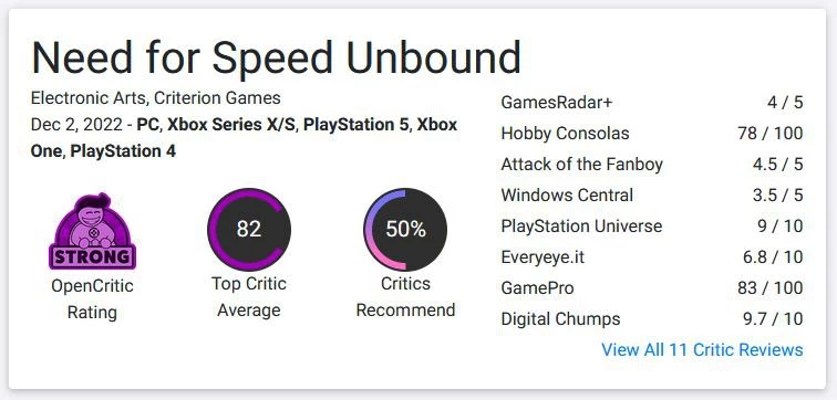 Hobby Consolas: «Need for Speed Unbound не изобретает колесо, но улучшает его. Criterion Games хотела выделиться новым художественным стилем и более впечатляющими техническими возможностями, и ей это удалось. Это не лучшая гонка года, но перед нами появилась NFS, которая стремится вернуть серию в высшую категорию».