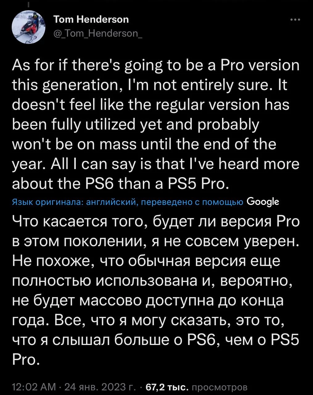 Также Хендерсон написал, что чаще слышит о PS6, чем о PS5 Pro