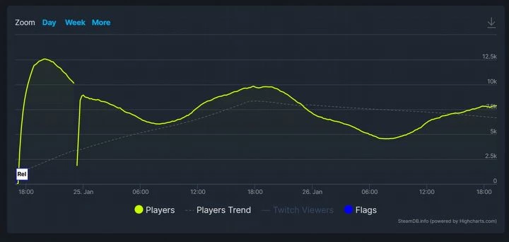 Количество людей, играющих в Forspoken в Steam.