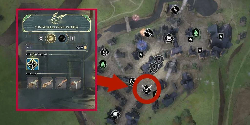 В Хогсмиде есть метлы для продажи, но к сожалению, они остаются закрытыми, пока игроки не закончат "Класс полета"после "Отдых Галки".Однако, как только магазин откроется, можно будет купить модель метлы по своему выбору стоимостью 600 золотых.