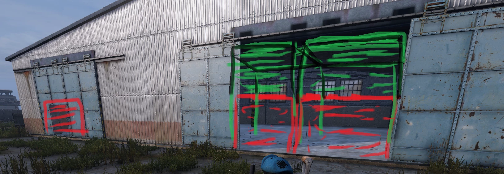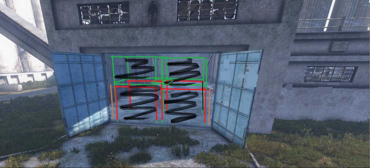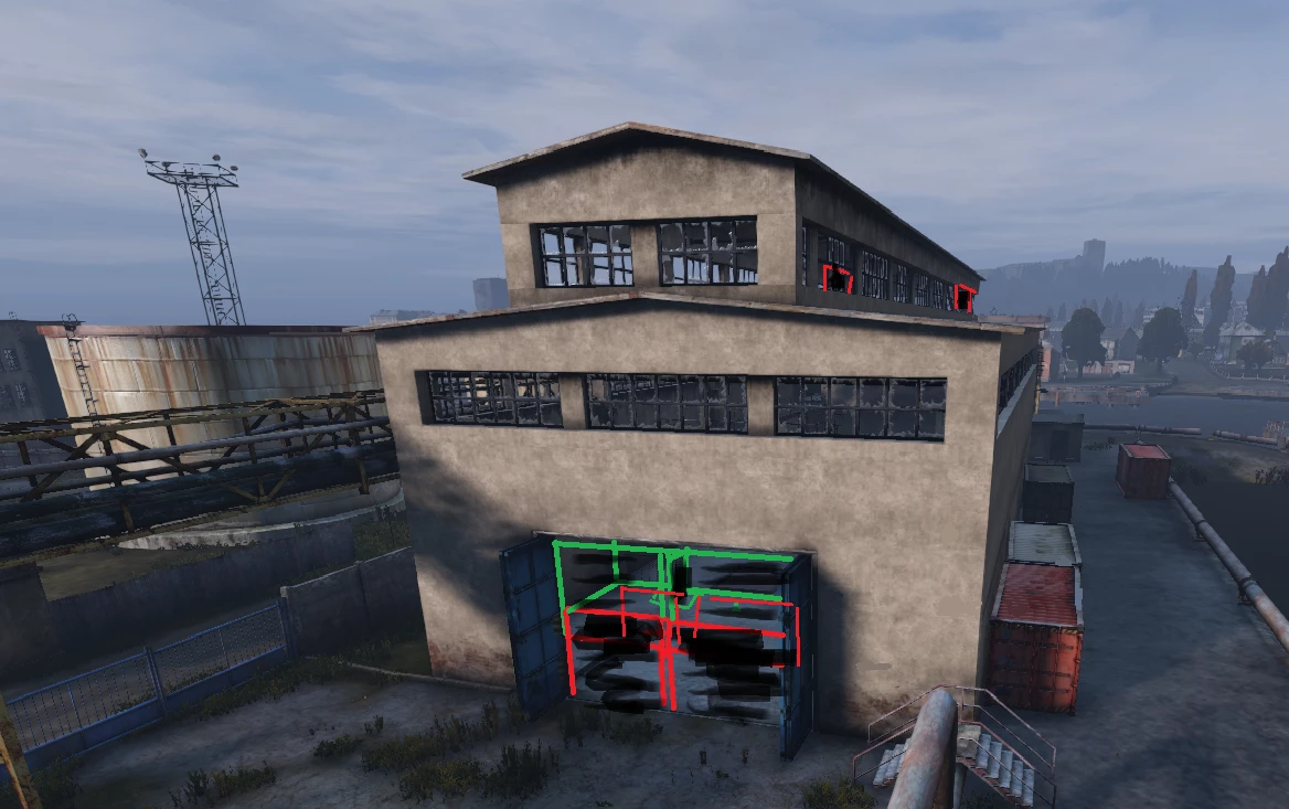 Достаточно большой ангар, обычно есть возможность как-то пропаркурить/добраться до верхних окон, если постараться то можно это избежать (но доски не кто не отменял). Подходит для небольших кланов
