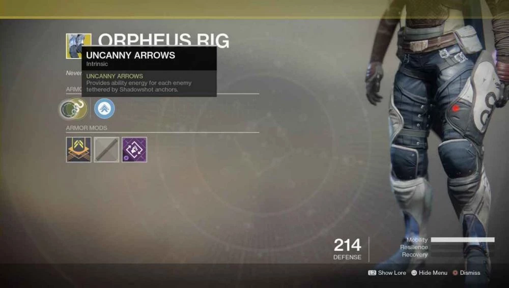 - Новая экзотическая броня для новой способности. Теперь, когда Охотники умеют уворачиваться, почему бы вам не получить небольшой баф? Отлично сочетается с Arcstiders.