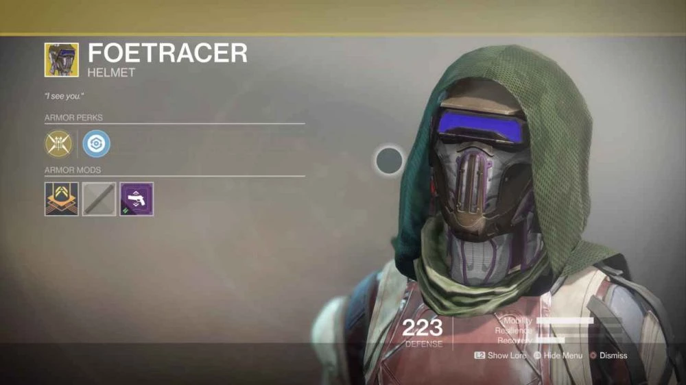 - Новый шлем Foetracer — это один из множества различных предметов и способностей, которые позволяют вам проследить врагов. Если вам нравится эта способность, значит этот шлем идеально вам подойдёт.
