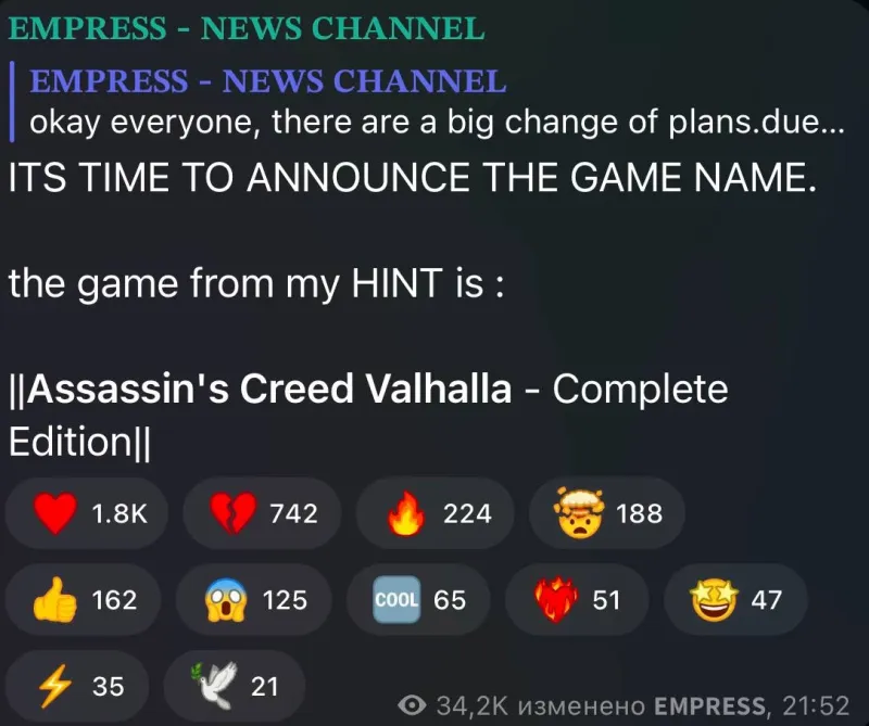 Хакерша EMPRESS рассказала, что следующей игрой, которую она взломает, станет Assasins Creed: Valhalla - Complete Edition. Подписывайтесь на наши соц. сети и получайте больше новостей! Комментарии Содержание В начало Комментарии