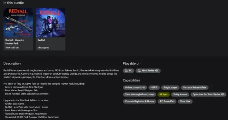 Со страницы Redfall пропало упоминание про 60 fps для консолей.