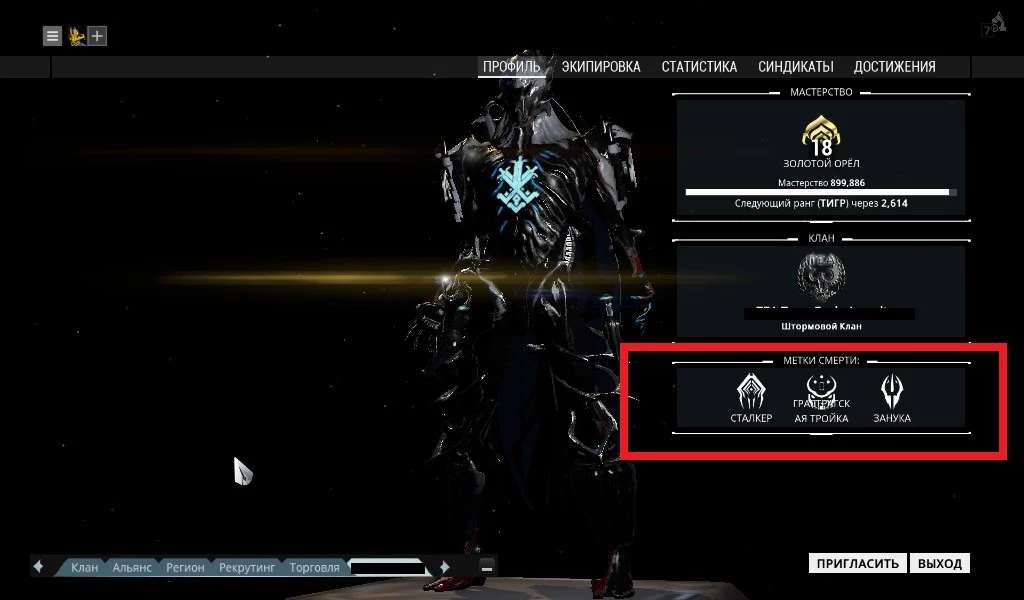 Посмотреть, какие у игрока есть метки (то есть, какие из боссов за ним охотятся), можно открыв профиль. Вот, например, товарищ, у которого есть все три метки.
