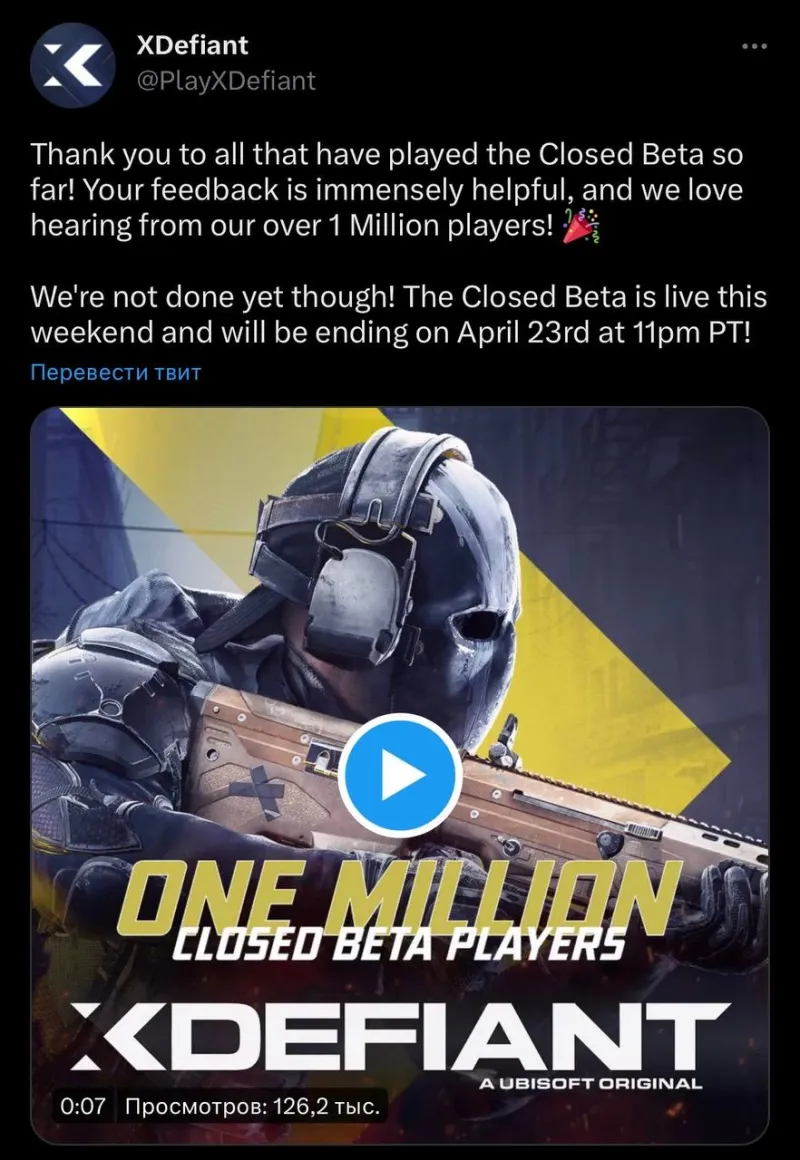 Ubisoft рассказала, что закрытый бета тест шутера XDefiant собрал свыше миллиона геймеров.
