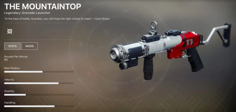 Этот гранатомет вы получите в качестве награды за квест Pinnacle Weapon. Кинетическое оружие с наивысшим уроном в секунду. Дополните его гранатами Spike, перками Pinnacle и Micro Missiles. Тем не менее, стоит отметить, что получить эти бонусы очень непросто. Придется убить много часов в PvP, чтобы достичь нужного уровня.