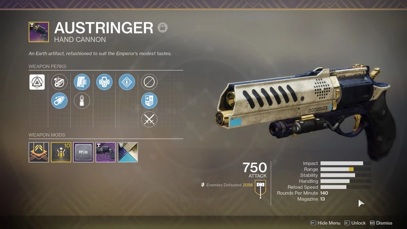 Еще одна импульсная винтовка, которую можно получить в Black Armory. Многим схожа с Go Figure. Чем выше базовые параметры, тем она становится лучше при использовании перков. Задействуйте те же бонусы, что и с первым оружием, но вместо Outlaw лучше выбрать Feeding Frenzy. Однако для этого оружия требуется годовой пропуск и разблокированная третья кузница.