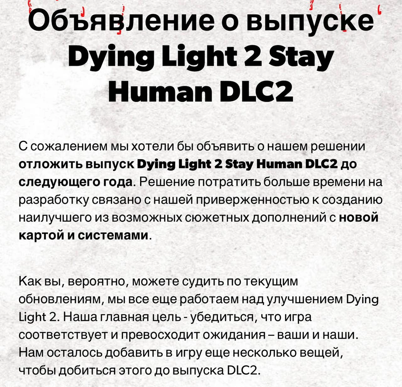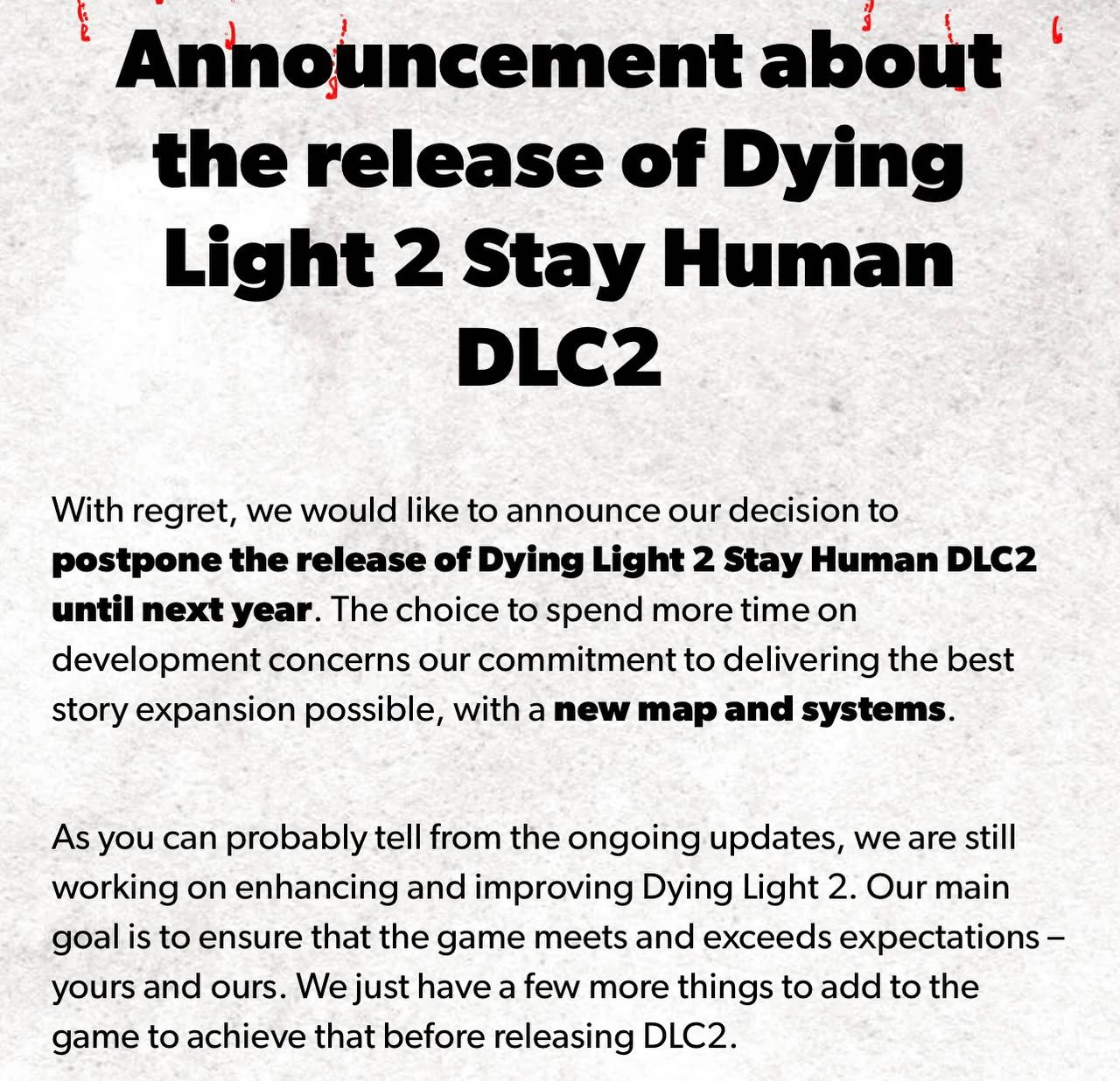 Разработчики из Techland объявили, что второе платное дополнение для Dying Light 2 решили отложить на следующий год.