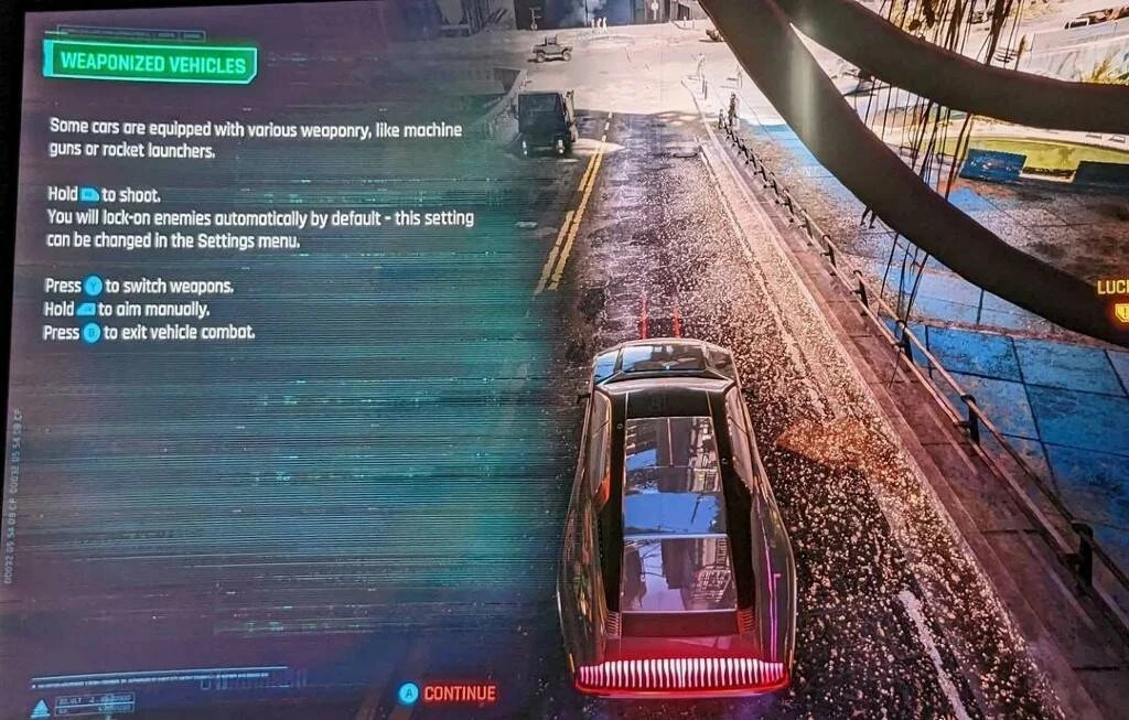 Кроме того, Ошри показал и другие скриншоты Phantom Liberty.Там можно увидеть подсказку по стрельбе из транспорта и диалог с персонажем Идриса Эльбы.