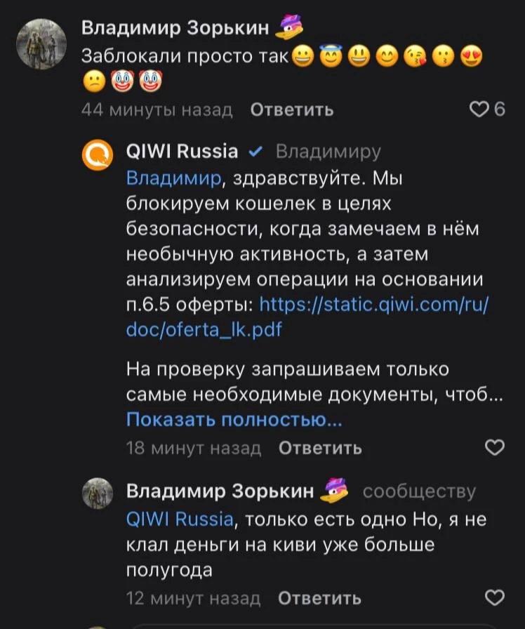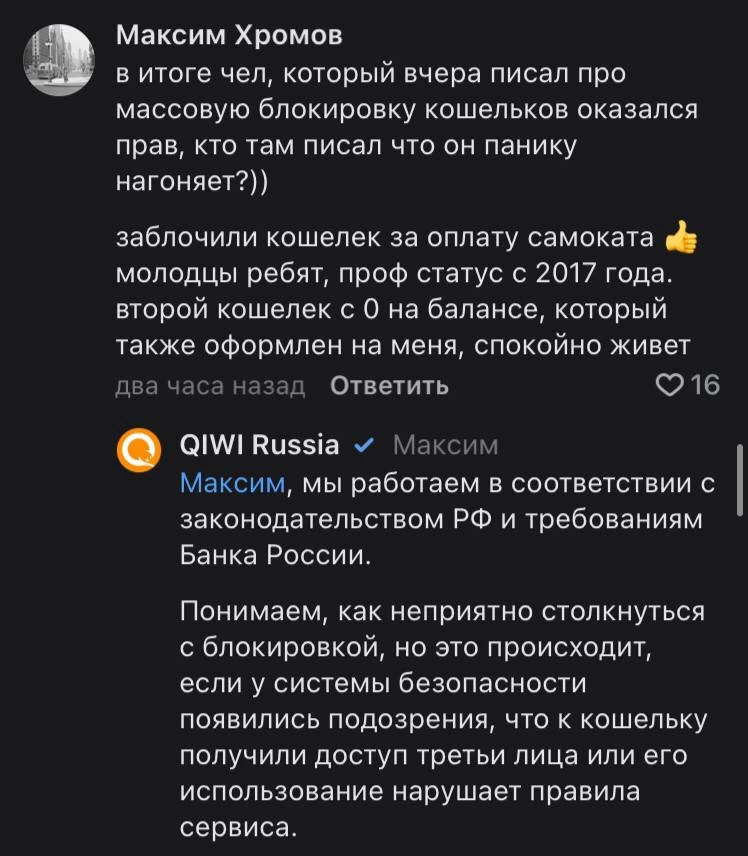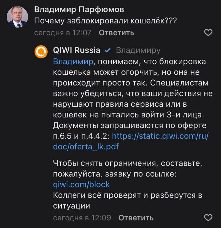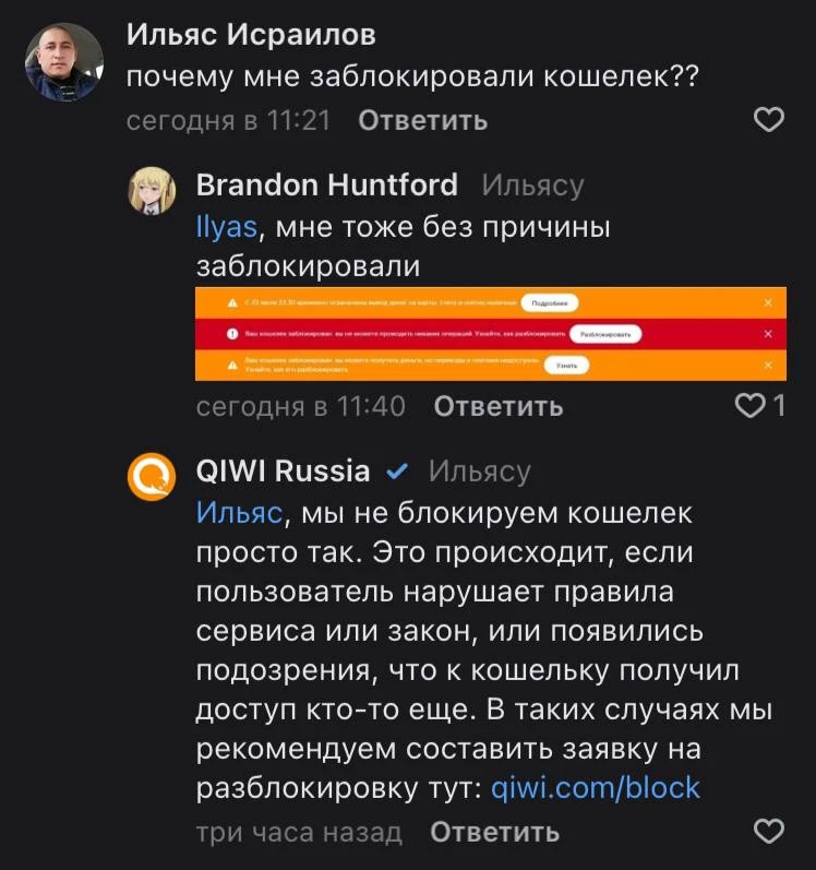 С самого раннего утра пользователи начали массово жаловаться на то, что их кошельки блокируются без видимой причины - за незначительные пополнения, переводы на пару сотен рублей или совсем без весомых причин.