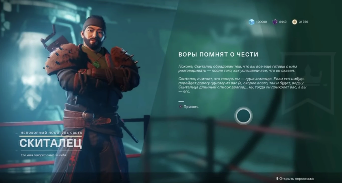 Если вы только что начали прохождение «Сезона Скитальца», то у вас, скорее всего, не будет доступа к вышеуказанному заданию. Поэтому для начала посетите данного NPC и выполните предварительные шаги, в рамках которых вы познакомитесь с режимами «Гамбит Прайм» и «Суд».
