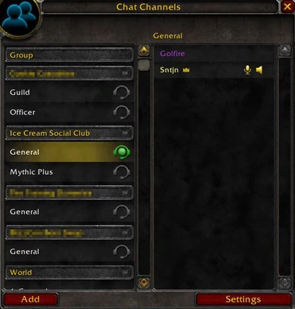 Вы также можете создать отдельное окно чата для канала, или же добавить каждый канал в главное окно чата. История чата сохраняется даже после выхода из системы, поэтому, вернувшись в игру, вы не пропустите ни единого слова из разговора.