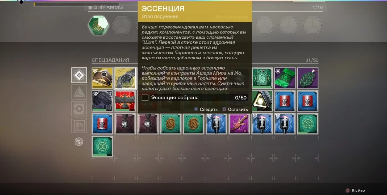 Теперь отнесите полученный предмет оружейнику Банши-44. После этого он даст вам список заданий, которые нужно выполнять для получения нового оружия. Первым делом вам необходимо будет собрать адронную эссенцию в количестве 50 штук. Сделать это можно следующим образом: