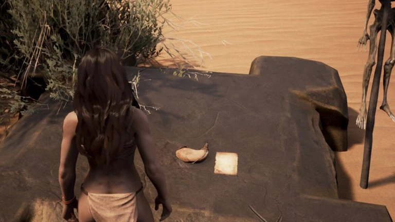 В самом начале игры быстро оглядитесь по сторонам. Неподалёку от вас находится плоский камень, на котором лежит бурдюк с водой и записка. Её, конечно, хватит ненадолго (речь о воде, а не о записке; у записки нулевая практическая ценность), но в пустыне даже пара глотков воды спасёт от обезвоживания.