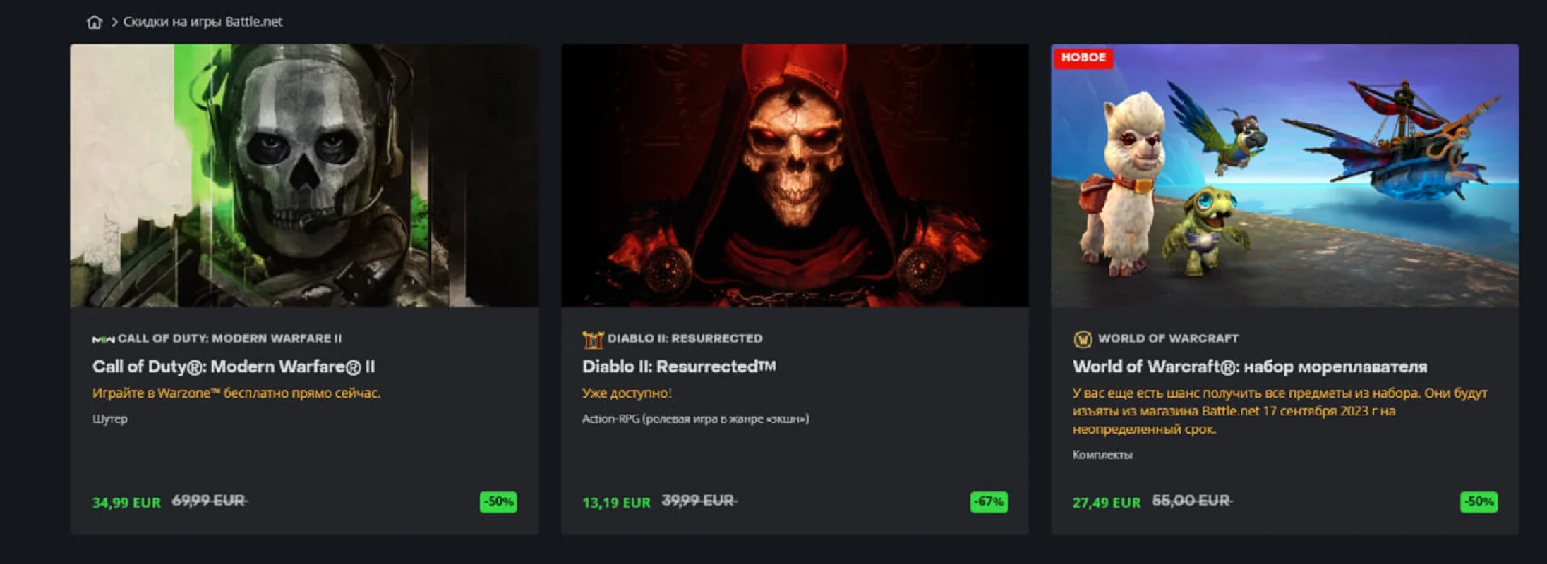 - Diablo II: Resurrected - 13,19 евро (со скидкой 67%);