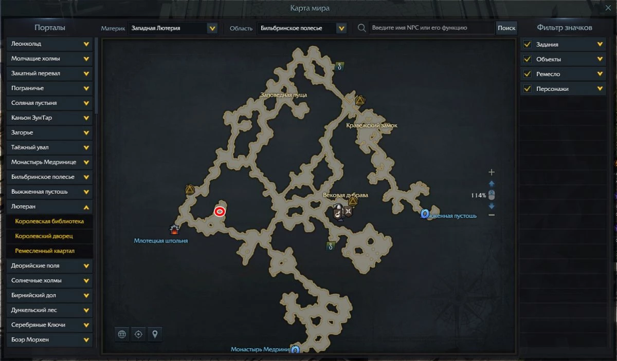 Бильбринский лихоцвет обитает в Западной Лютерии, Бильбринском полесье. Его поиск не является трудным, ведь расположен босс прямо рядом с порталом.