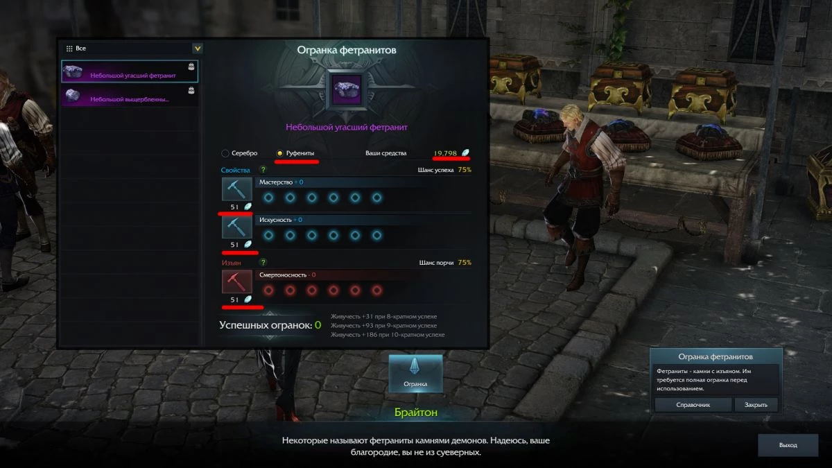 Третьим компонентом, куда можно потратить свои с трудом накопленные кристаллы, служит огранка фетранитов.