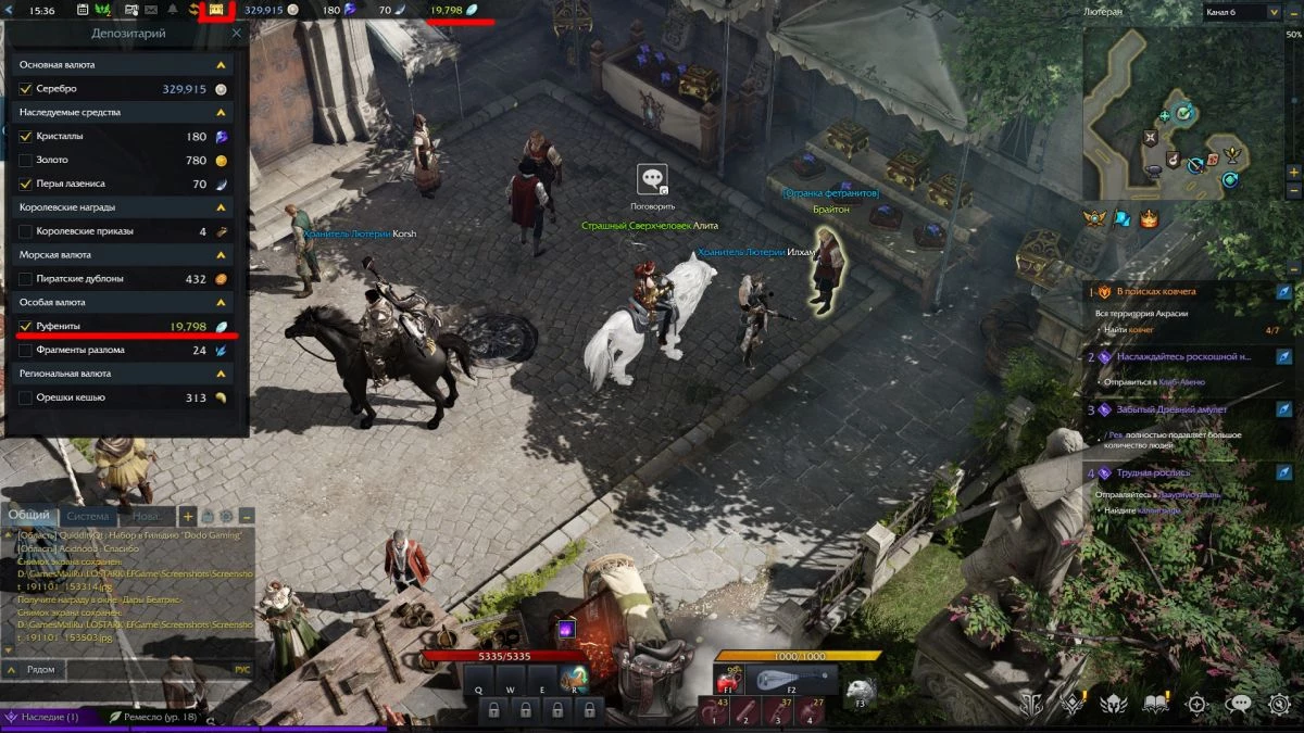 Также руфениты неплохо зарабатываются за выполнение локальных заданий/событий (которые помечены красным восклицательным знаком и часто показываются слева вверху, где уведомления), при распылении ненужных предметов в инвентаре и за выполнение заданий Эфонского союза (вкладка Alt+J).